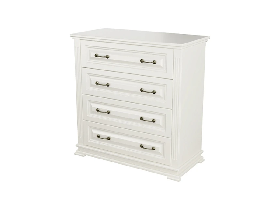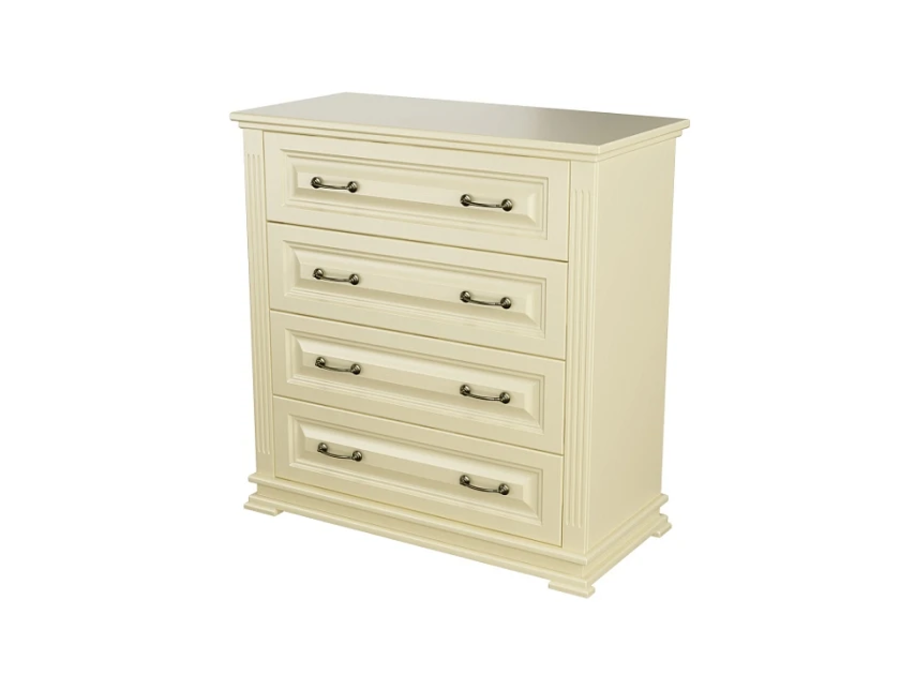 Milena - комод для тех, кто выбирает мебель один раз и надолго. Каркас и фасады из натурального массива, защитное лаковое покрытие, которое проявляет неповторимую текстуру дерева и никакой бумажной плёнки, которая вздувается через год. Четыре глубоких ящика на шариковых направляющих полного выдвижения делают хранение удобным, а вес 61 кг. говорит о плотности материала без лишних слов.