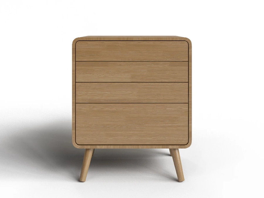 Айлин - комод для тех, кто ценит чистые линии и продуманные детали. Скруглённые углы корпуса, соединённые на шип, разноуровневые фасады и полное отсутствие ручек создают образ, который одинаково уместен в строгой скандинавской спальне и в мягком уютном интерьере. Открыть ящик - одно лёгкое нажатие.