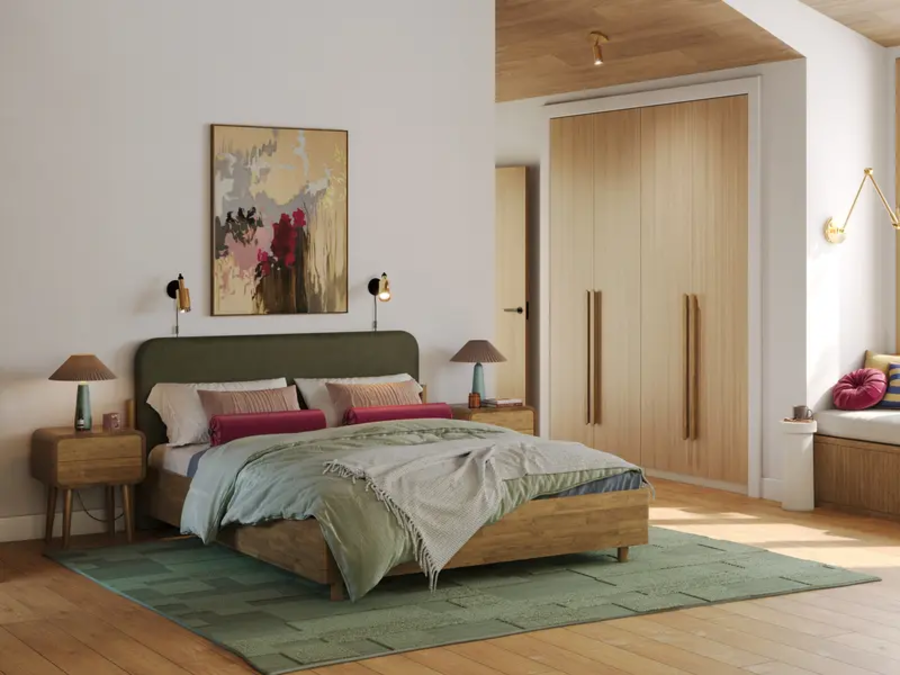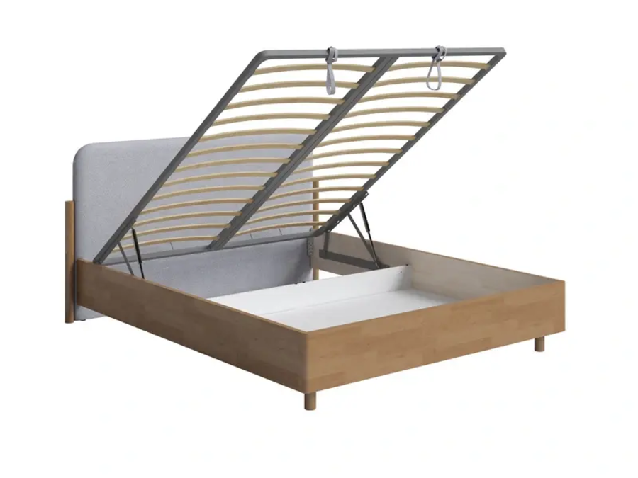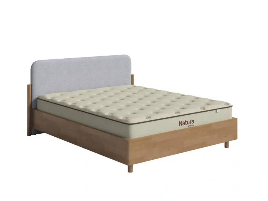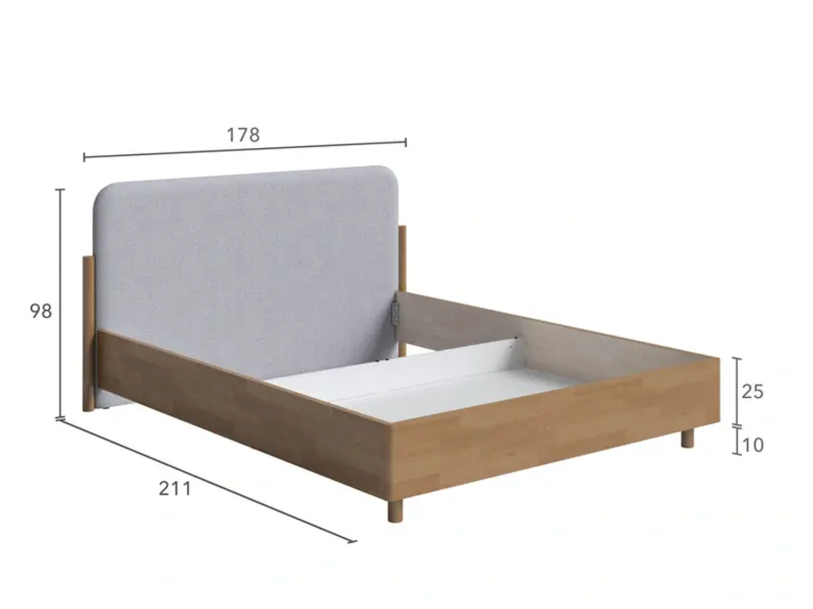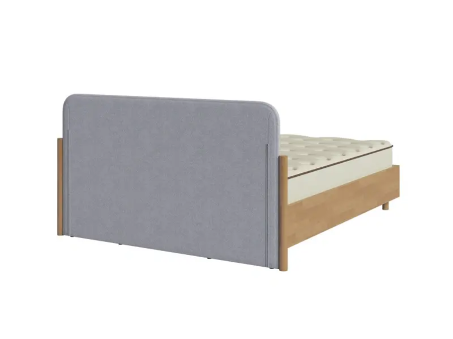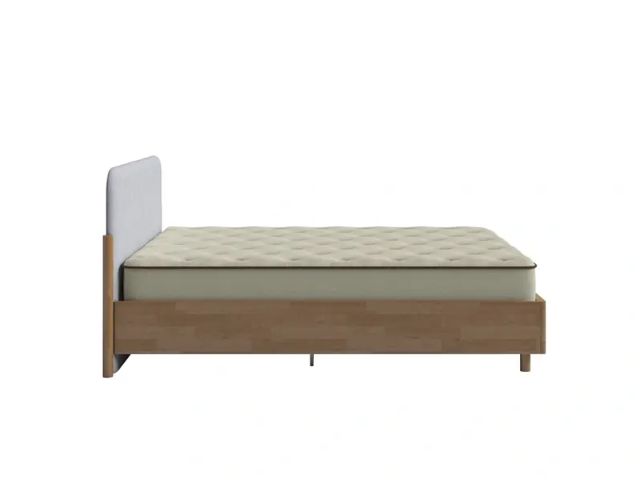 Grove - кровать для тех, кто выбирает натуральность без аскетизма. Тёплая текстура массивного щита и мягкое изголовье в ткани создают сочетание, которое выглядит дорого и ощущается уютно. Цилиндрические опоры, округлые формы и закруглённые торцы - никаких острых углов. Просвет 10 см. - для швабры и робота-пылесоса. Подходит для городской квартиры, загородного дома и дачи.
