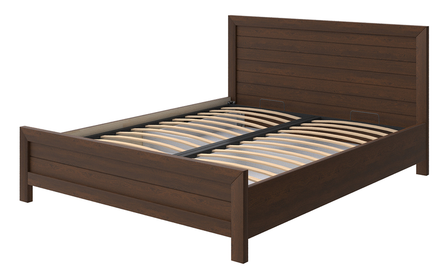 Кровать комплектуется металлическим основанием с подъемным механизмом. Газовые амортизаторы обеспечивают плавное и лёгкое открытие, открывая доступ к вместительному бельевому коробу под спальным местом.