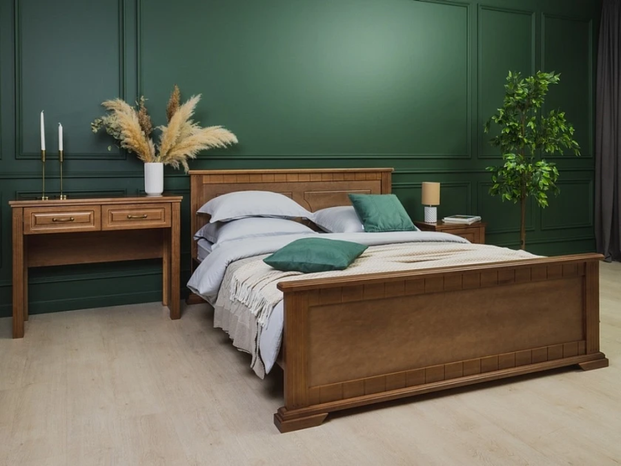 Кровать Milena М береза с высокой спинкой в изголовье кровати, изготавливается из массива березы.