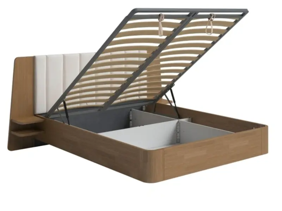 ➢ Встроенные боковые полки на вылетах изголовья — уникальное решение, объединяющее функциональность и дизайн, позволяющее удобно разместить необходимые мелочи и создать завершённый образ мебели.